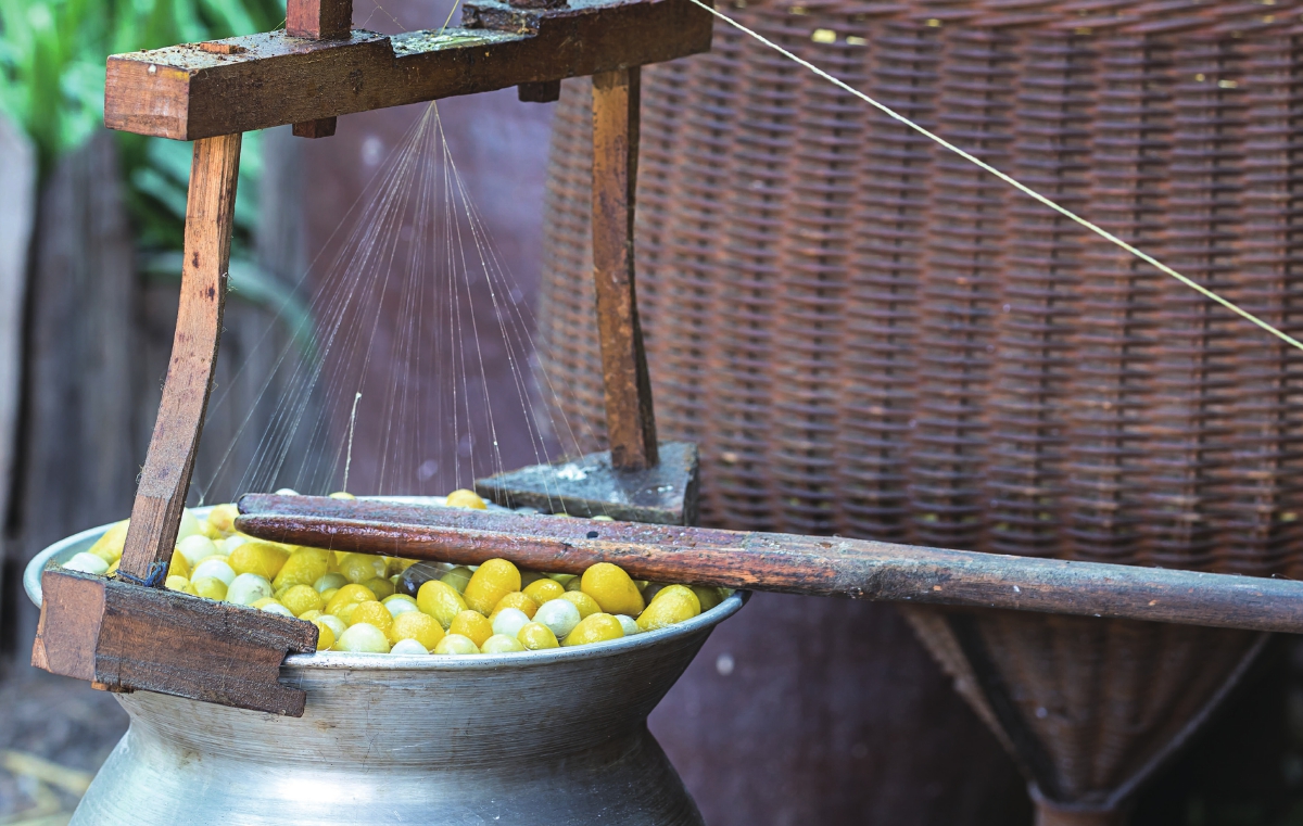 手工缠绕的天然蚕丝